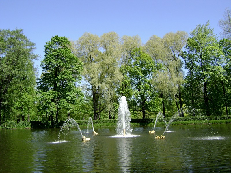 Фонтан «Китовый» в Петергофе можно отыскать рядом с Большими цветниками Нижнего сада. У подножия западной гранитной лестницы, спускающейся в Нижний парк от «флигеля под гербом», находится довольно обширный бассейн. Это – Песочный пруд. В центре его поднимается восьмиметровый столб воды, вокруг